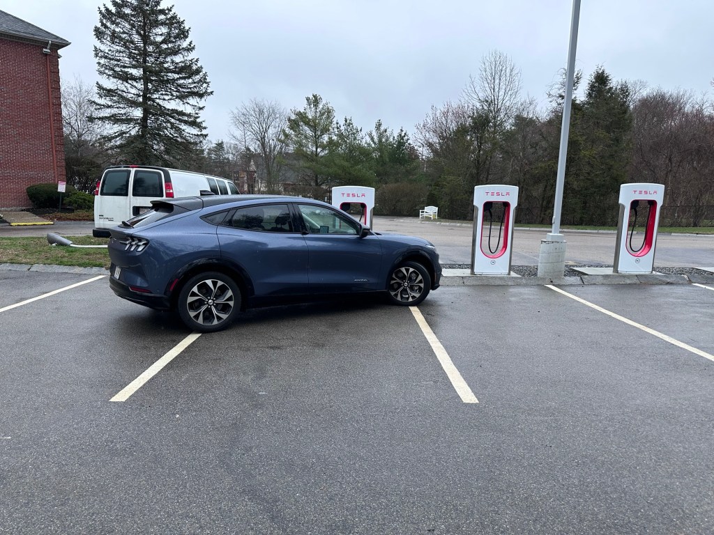 Needless to say, I could not wait to try my luck at the Tesla magic dock charging facility in Foxborough. I hopped into my Ford Mustang Mach-e, opened the Tesla app, and learned that 12 of 12 chargers were available. The volume of chargers was simply amazing, given that most facilities have a maximum of four.